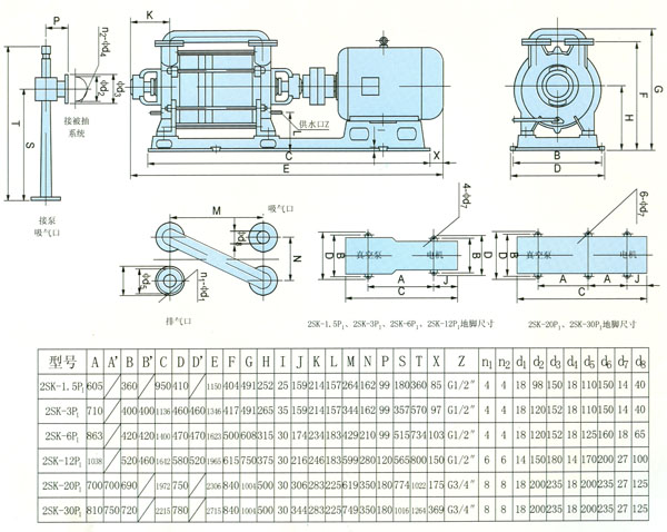2SK系列使用于吸入壓力低于8KPa的工況條件,2SK-P1系列使用于吸入壓力低于4KPa的工況條件。