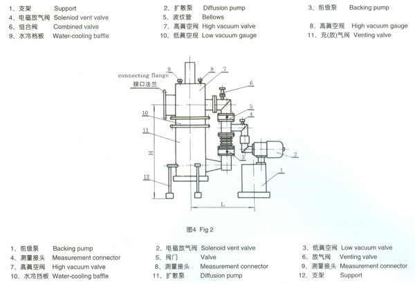 選擇:根據用戶的使用要求,JK-200型和JTK-200型以下的真空機組按圖1型式選取;JK-300型和JTK-300型以上的真空機組,可按圖2或圖3的型式選取;JF型真空機組可按圖4型式選取。
